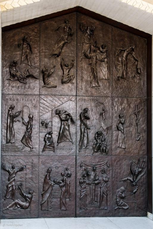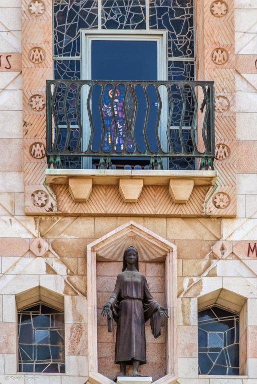 Nous avons poursuivi notre visite à la Basilique de l’Annonciation. Nous avons évoqué les 180 km parcourus par Marie, de Nazareth aux montages de Judée, lorsqu’elle partit aider sa cousine Elizabeth, qui attendait, malgré son âge avancé, un enfant. Elle-même attendait le fils de Dieu, comme l’ange Gabriel le lui avait annoncé.