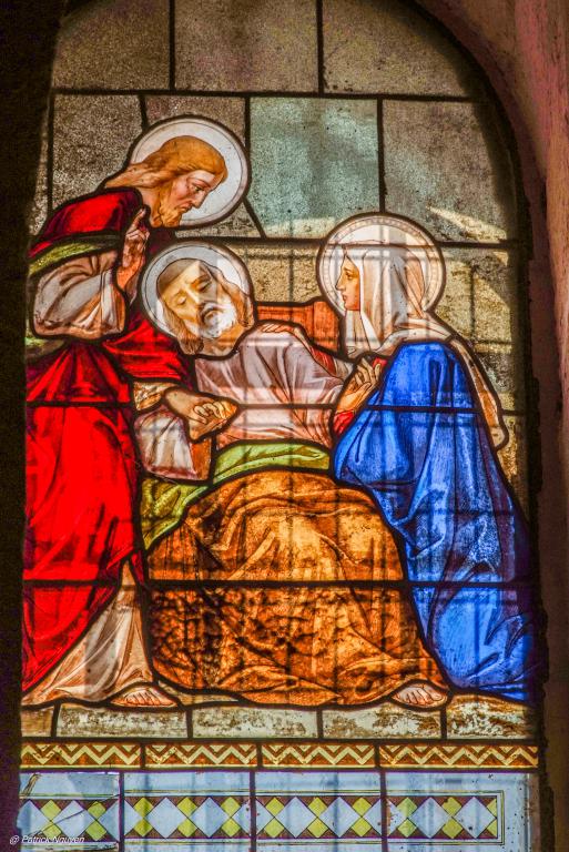 - Saint Luc évoqué par le bœuf ou le veau, pour l’allusion que son évangile fait au sacrifice offert par Zacharie (Luc 1, 25). Le bœuf ou le veau sont les animaux sacrificiels par excellence. Luc symbolise le sacrifice.